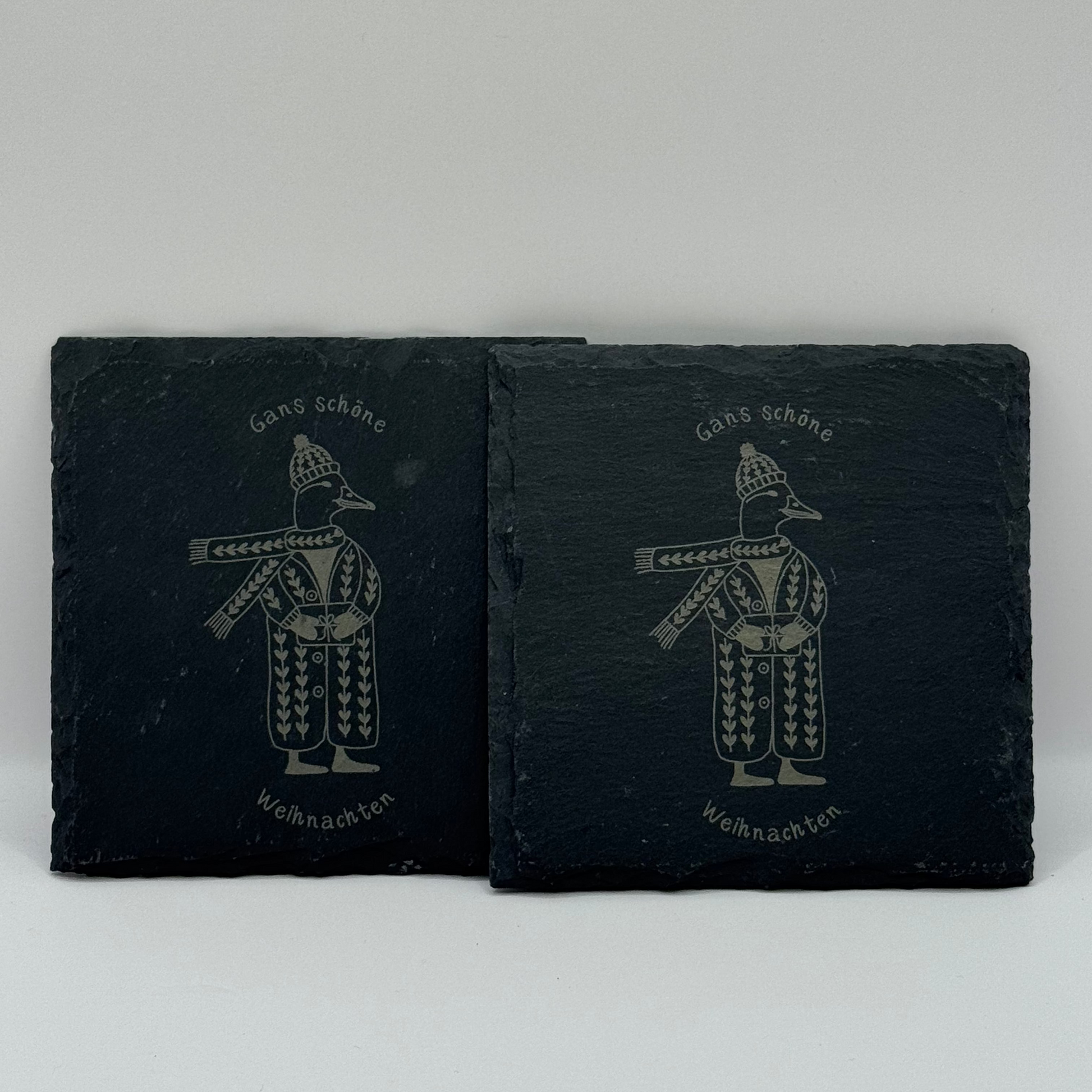 Schiefer Untersetzer "Gans schöne Weihnachten"